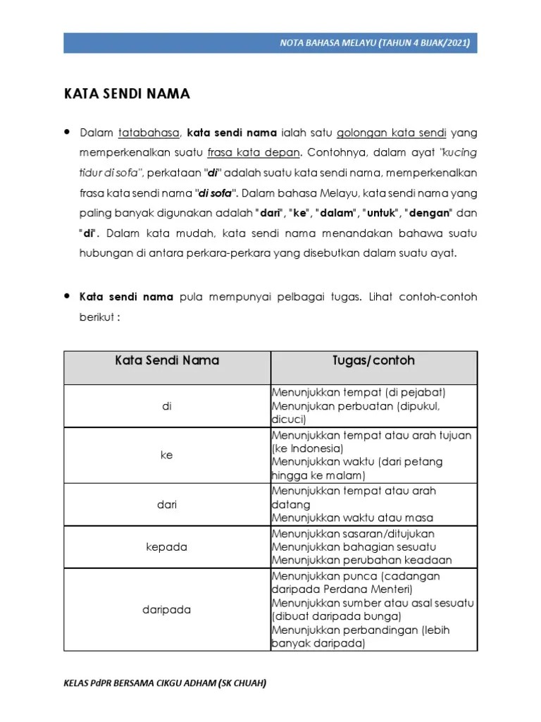 Jom tonton video kali ini sebagai pengenalan tentang tajuk kata sendi nama untuk murid tahun 4. Quiz your students on bahasa malaysia tahun 4, 5, & 6 (kata sendi nama) using our fun classroom quiz game quizalize and personalize your teaching. Kata sendi nama tahun 4 ;